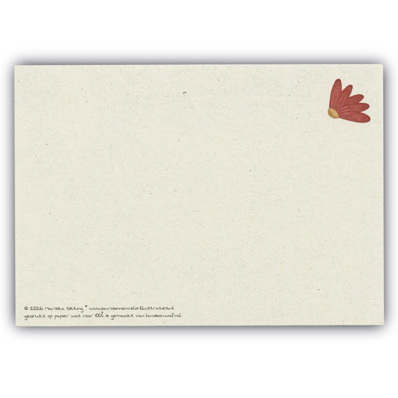 Gedrukt op 295 grams PaperWise, wat voor 100% gemaakt is van landbouwafval. Een duurzame keuze!