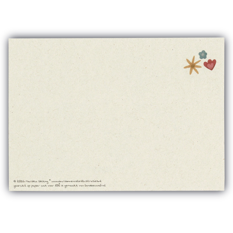 Gedrukt op 295 grams PaperWise, wat voor 100% gemaakt is van landbouwafval. Een duurzame keuze!